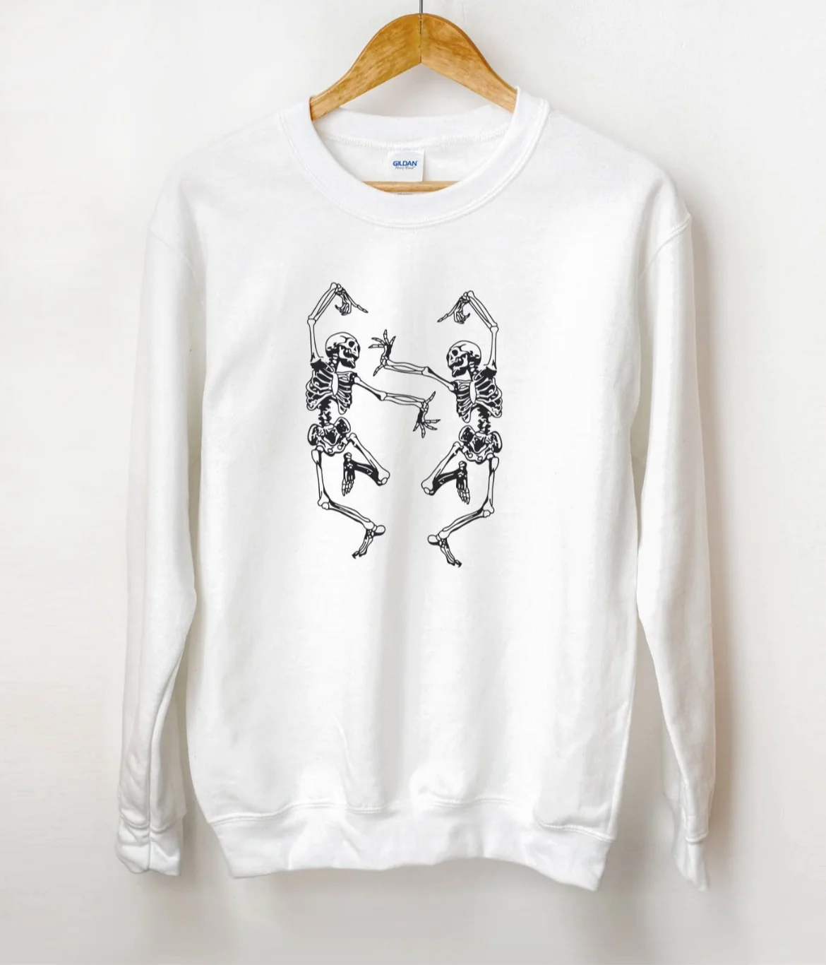 We use DTG Technology to print on to Dancing Skeleton Sweatshirt